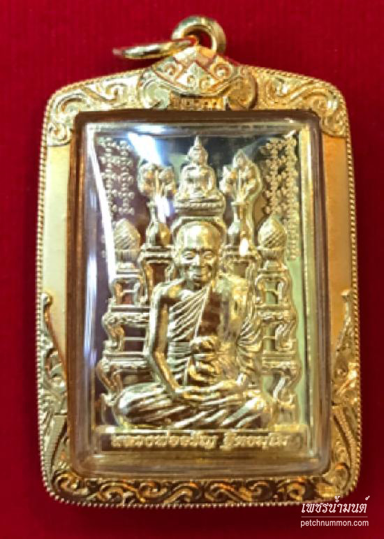 เหรียญทองคำพระอาจารย์นำเลี่ยมกรอบทองคำวัดดอนศาลา หลวงพ่ออุทัยปลุกเสกปี ๒๕๕๖