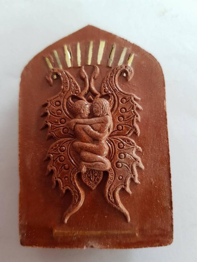พระปิดตามหาลาภ ผงพรายเถ้าอังคาร ครูบาชัยชนะ สำนักสงฆ์พุทธอริยะรังสีบึงกาฬ ปี 2559