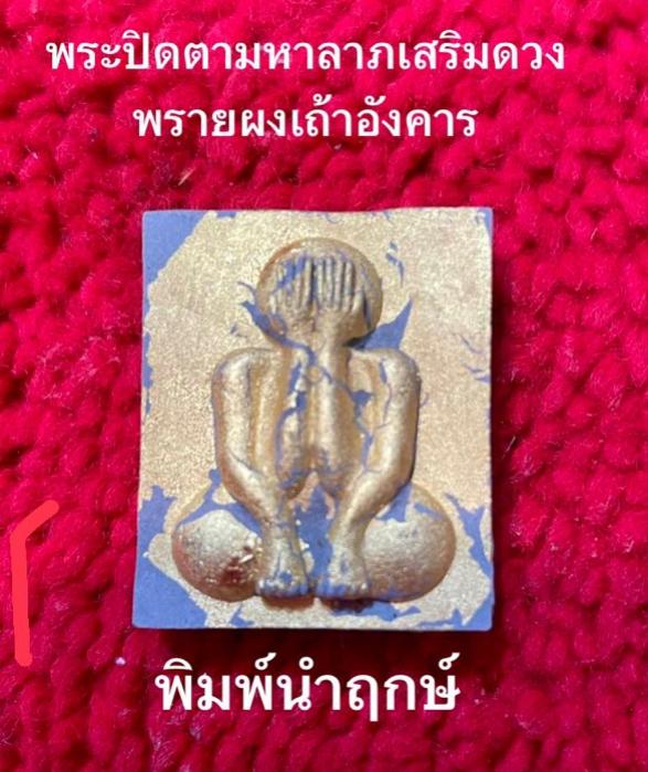พระปิดตามหาลาภ ผงพรายเถ้าอังคาร ครูบาชัยชนะ สำนักสงฆ์พุทธอริยะรังสีบึงกาฬ ปี 2559 ขนาดประมาณฐานกว้าง 2 ซม. สูง 3 ซม.
