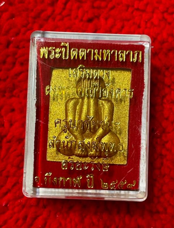 พระปิดตามหาลาภ ผงพรายเถ้าอังคาร ครูบาชัยชนะ สำนักสงฆ์พุทธอริยะรังสีบึงกาฬ ปี 2559